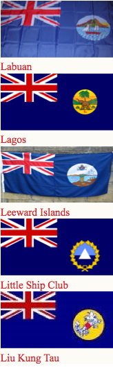 British Consul flag, British Custom House flag, and Union Jack Merchant flag