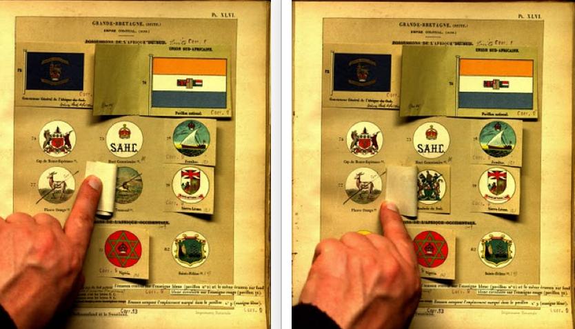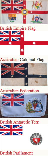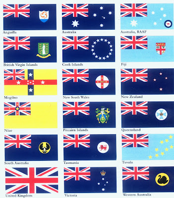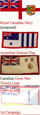 The chart on the left celebrates the first 100 years of the Australian National Flag and the use of the British Union Flag in 30 national, state and vice-regal Flags flown between 1901 and 2001. It also acknowledges the origins of the Australian National Flag, derived from the British Admiralty’s basic design directives for colonial and Dominion Flags, i.e., the Union Flag and a local design feature elsewhere on the flag.That on the right shows the wrong depiction of the Canadian flag inexplicably.