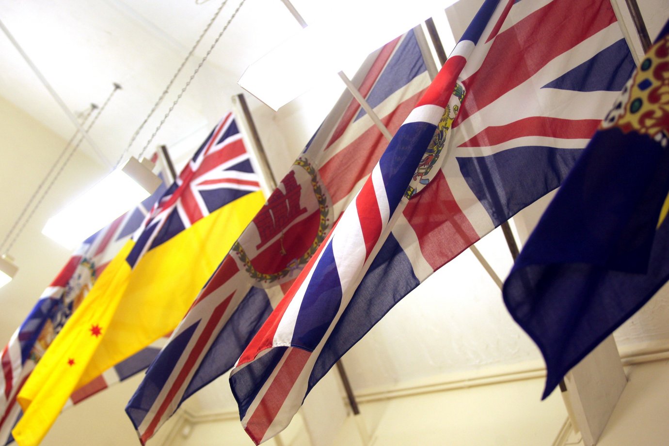 The flags of the Overseas Territories a Parliament Square and Vice-Regal standards at the Commonwealth Flag Project