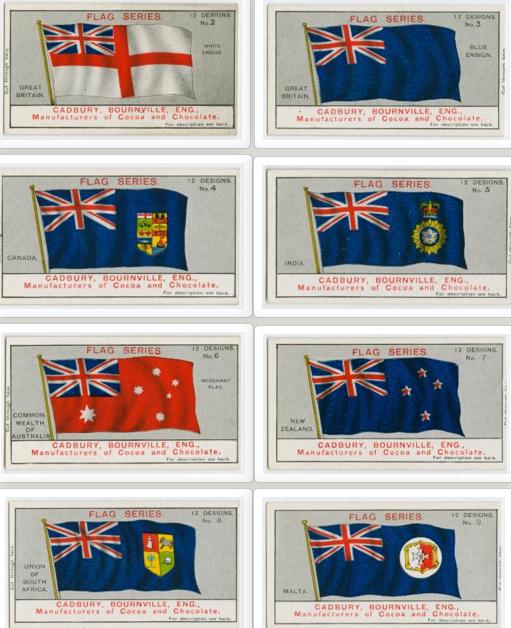 British Empire flags from the set of cards issued for the 1936 Berlin Games produced by Aurelia of Dresden.