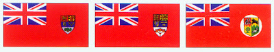 Canadian Flags, the one on the left showing its shield within a white disc which I have never seen anywhere else.