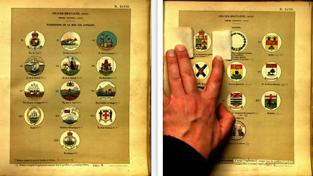 The image on the left is from the Philips British Empire Atlas with the Navy League Crest illustrating the historical development, physical and climatic features, natural resources, trade and economic development, scenery, flags and badges of the British Empire. It was printed in Great Britain in 1924, is 250mm x 195mm and over 80 pages.