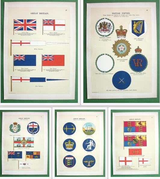 The Flags of the British Empire from 1917, Includes: England. Scotland. Ireland. War. Naval. Wales. Royal Family. Customs. Vessels. Lighthouses. Boats. Gibraltar. Malta. Cyprus. Isle of Man. Alderney. Jersey. Guernsey. Canada. Bermuda. Bahama. Jamaica. Turks and Caicos. Barbados. St. Lucia. Falkland. New Zealand. Tonga. Australia. Borneo. Malay. Pahang. India. Egypt. Nigeria.