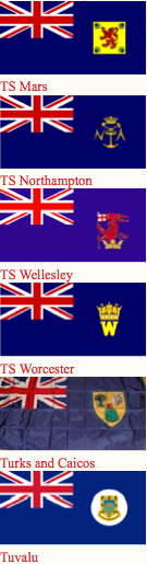 Commodore's Broad Pendant flag, Scottish flag, and flag of the Lord Lieutenant of Ireland
